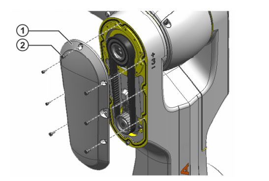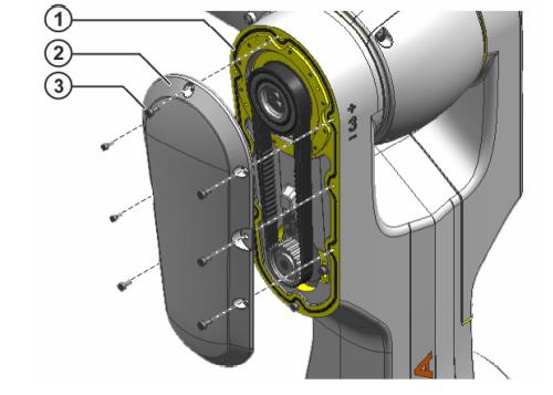 • 擰出皮帶側(cè)蓋板 A3 上的 9 個內(nèi)六角螺栓 M4x8-8.8